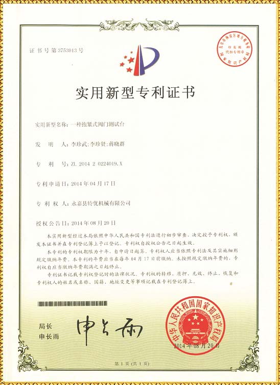 安全閥、蝶閥試驗臺專利:下一篇