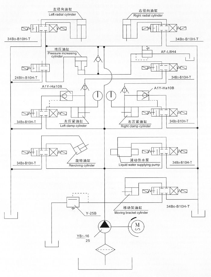 三、接通電源,按油泵啟動按鈕,檢查電機轉動方向,是否正確(順時針方向)進行5—1 O分鐘空載運轉后,調節油泵壓力在5 0MPa進行試機,各種動作,檢查各管路有無泄漏,發現不良現象,應立即停機排除。