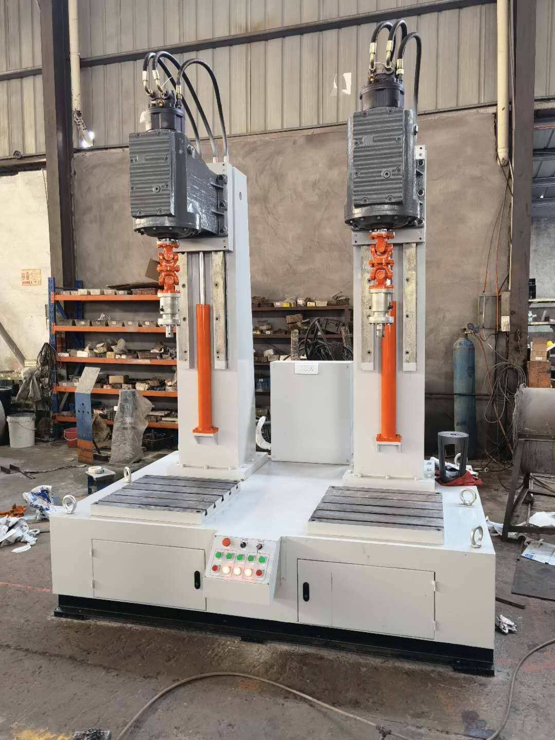 JLX型旋塞閥研磨機分為一工位和兩工位研磨機、一工位研磨機和兩工位研磨機供用戶可根據(jù)要求選配。該設備通過液壓馬達來控制轉(zhuǎn)速旋轉(zhuǎn),用液壓流量來控制轉(zhuǎn)速快與慢,根據(jù)閥門口徑大小和材質(zhì)來調(diào)整轉(zhuǎn)速快慢,這樣才閥體和閥芯塞配合度為一致。用戶根據(jù)被研磨閥體的工藝要求,選擇合適的研磨劑,粗磨和精磨相結(jié)合,或閥體與閥芯塞浮動對磨。研磨頭通過液壓油缸來上升下降來實現(xiàn)。